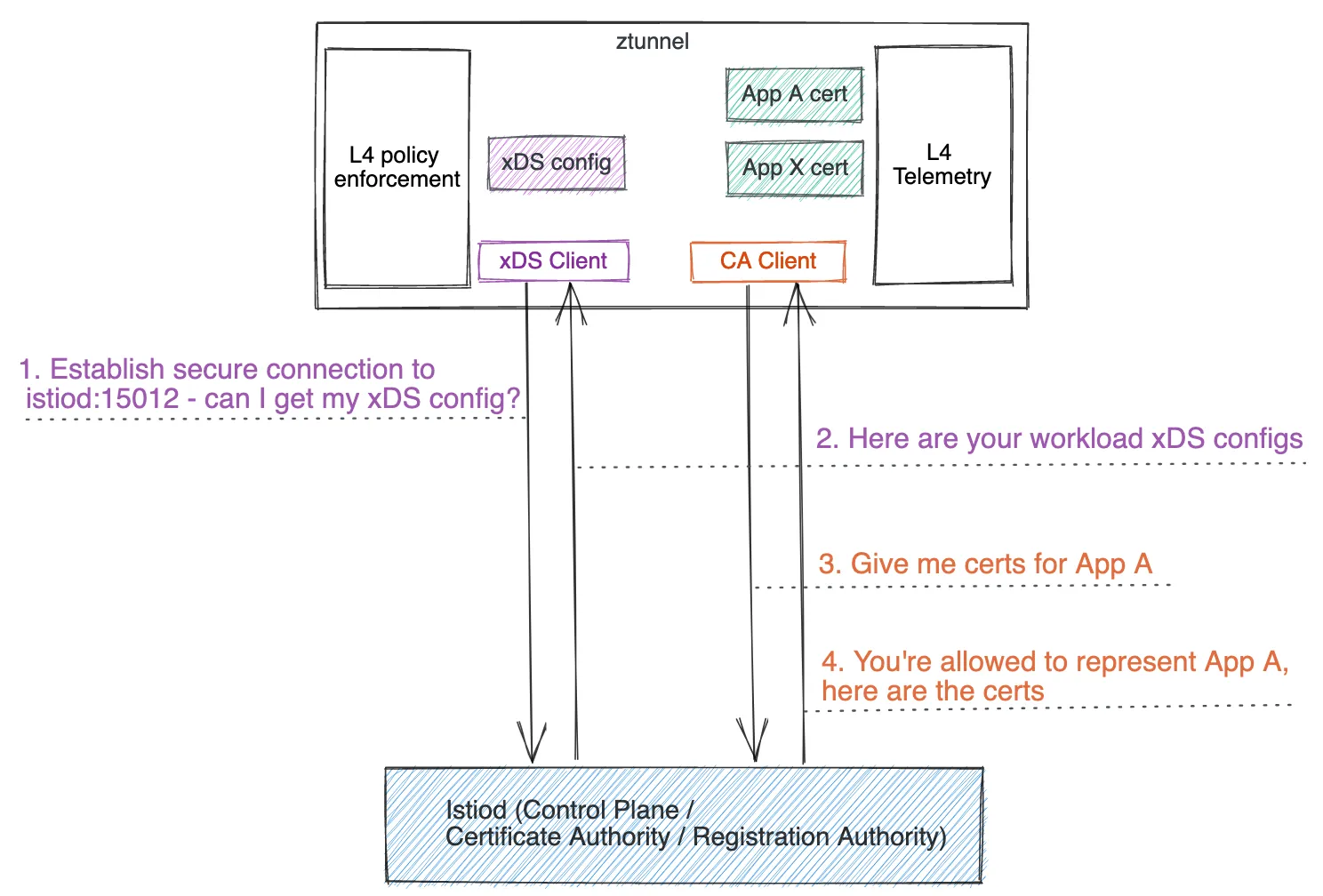 Istio Ambient Mesh의 핵심 구성 요소 중 하나는 ztunnel이라는 새로운 컴포넌트다. 이 컴포넌트는 기존 사이드카 없이도 메시 내부의 워크로드 간 통신을 보안(mTLS) 기반으로 보호해주는 역할을 한다.