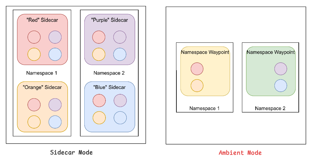 Ambient Mesh는 이러한 한계를 극복하기 위해 사이드카 없는 구조로 설계되어, 보안과 성능은 유지하면서도 더 유연하고 단순한 메시 환경을 제공한다.