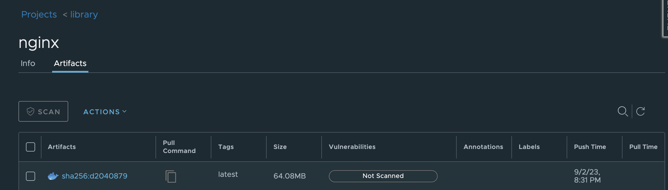 먼저 푸시할 예시 이미지를 도커 허브에서 pull 한다. ( 준비한 이미지를 사용해도 무방하다 )