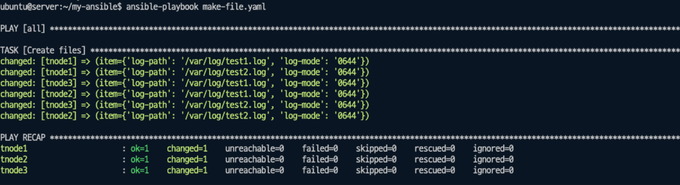 - 어떠한 명령어이라도 실행 시, 테스크를 changed로 합니다.