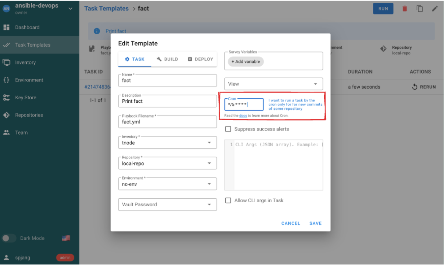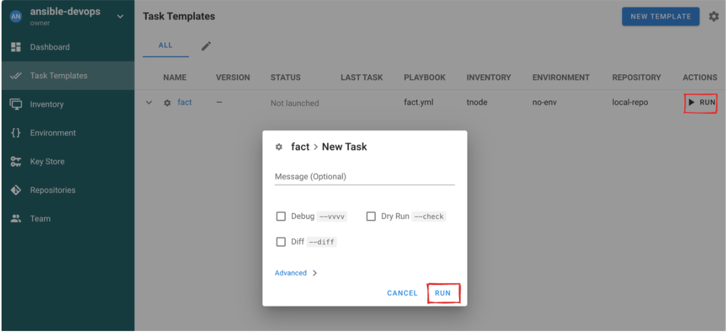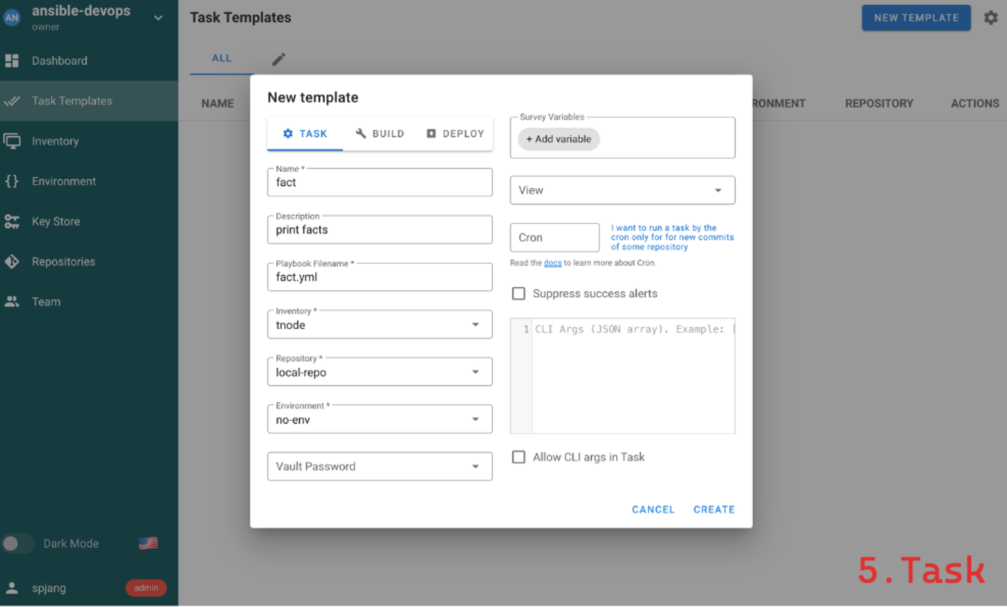 - Task Templates : 플레이북 실행 정의(템플릿)