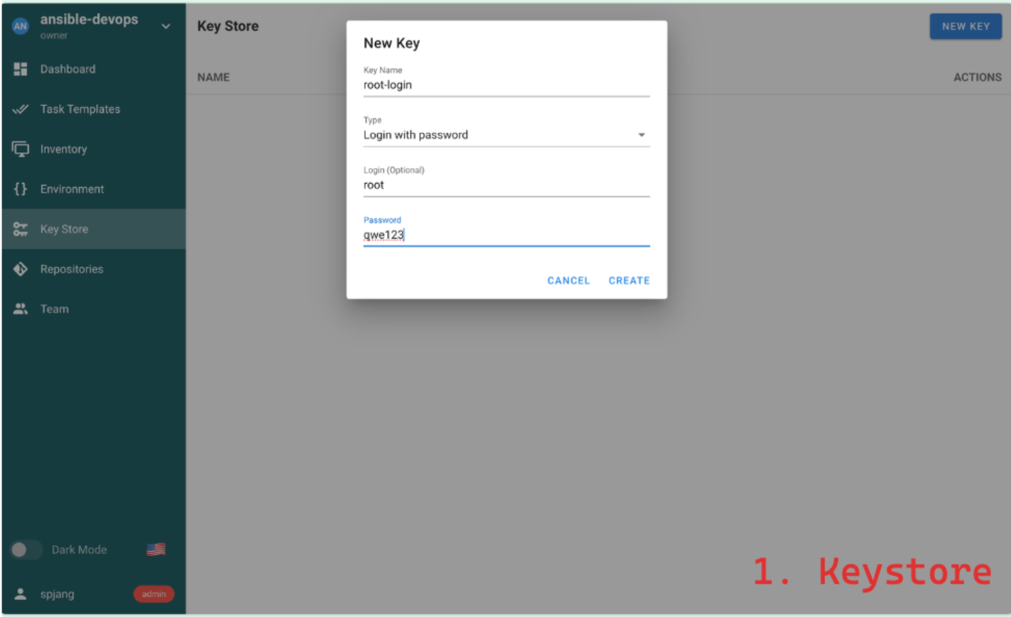 - 환경, 인벤토리, 저장소 및 액세스 키 관리