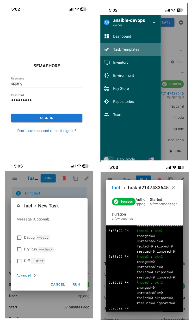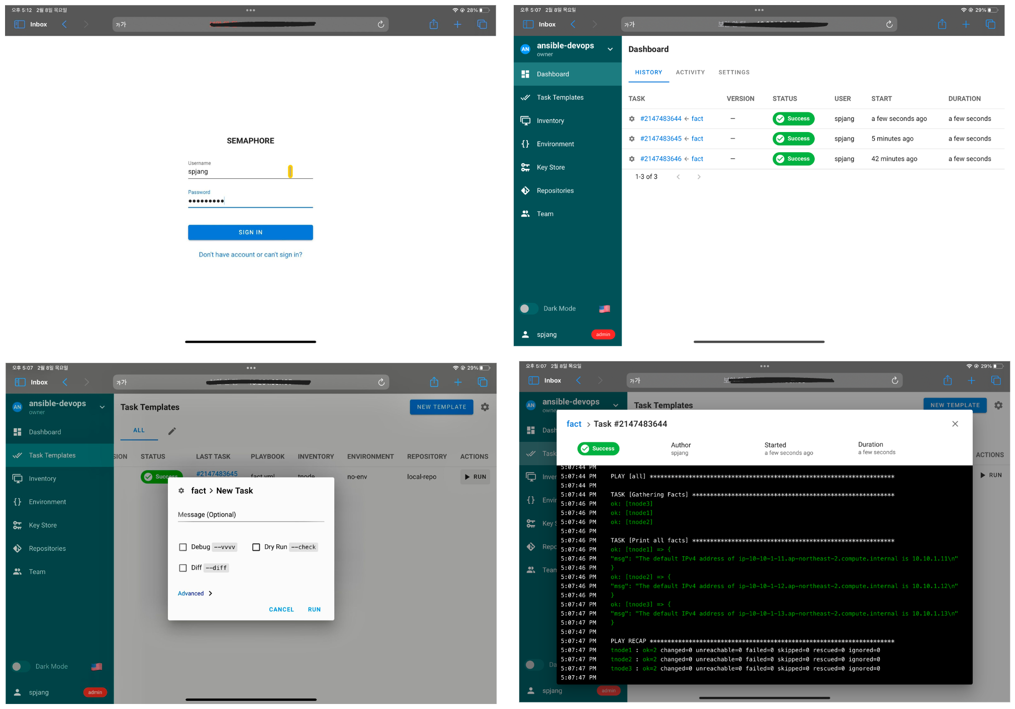 - 브라우저에서 플레이북 실행. 반응형 UI는 모바일 기기에서 Semaphore 사용 가능