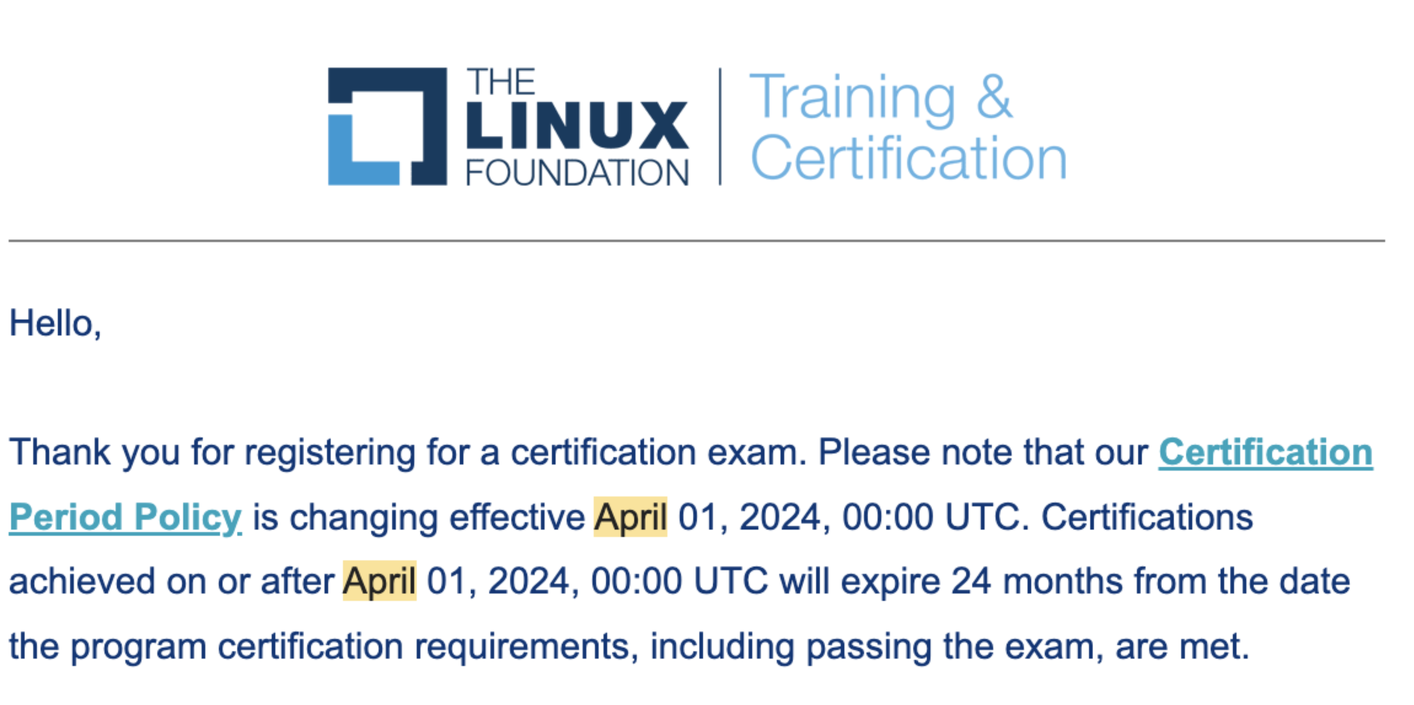 2024년, 얼마 전 CNCF에서 2024년 04.01일 부로 CKA, CKAD의 자격증 증명기간이 3년 -> 2년으로 변경된다는 메일을 받았다. 그리고 연장받았던 시험 응시기간도 2024년 2월까지로 1개월 채, 남지 않았다는 것을 깨달았다.