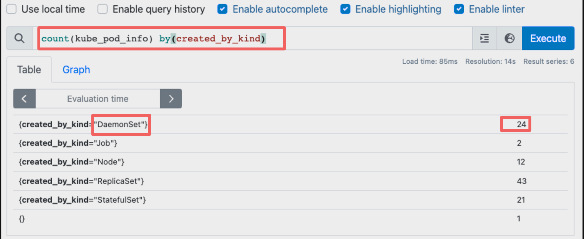 count(kube_pod_info) by(created_by_kind)