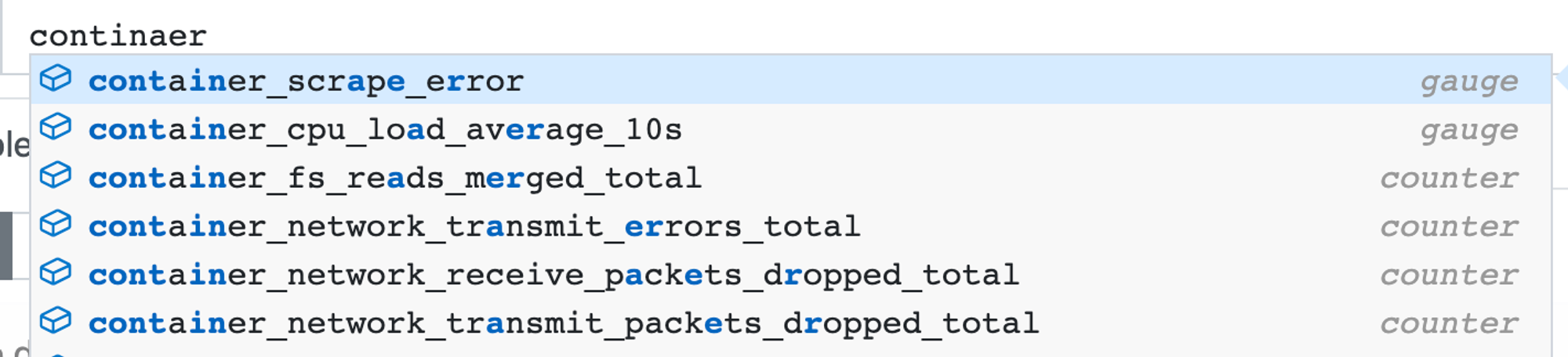 sum(calculate sum over dimensions) : 조회된 값들을 모두 더함min(select minimum over dimensions) : 조회된 값에서 가장 작은 값을 선택max(select maximum over dimensions) : 조회된 값에서 가장 큰 값을 선택avg(calculate the average over dimensions) : 조회된 값들의 평균값을 계산group(all values in the resulting vector are 1) : 조회된 값을 모두 ‘1’로 바꿔서 출력stddev(calculate population standard deviation over dimensions) : 조회된 값들의 모 표준 편차를 계산stdvar(calculate population standard variance over dimensions) : 조회된 값들의 모 표준 분산을 계산count(count number of elements in the vector) : 조회된 값들의 개수를 출력 / 인스턴스 벡터에서만 사용 가능count_values(count number of elements with the same value) : 같은 값을 가지는 요소의 갯수를 출력bottomk(smallest k elements by sample value) : 조회된 값들 중에 가장 작은 값들 k 개 출력topk(largest k elements by sample value) : 조회된 값들 중에 가장 큰 값들 k 개 출력quantile(calculate φ-quantile (0 ≤ φ ≤ 1) over dimensions) : 조회된 값들을 사분위로 나눠서 (0 < $ < 1)로 구성하고, $에 해당하는 요소들을 출력