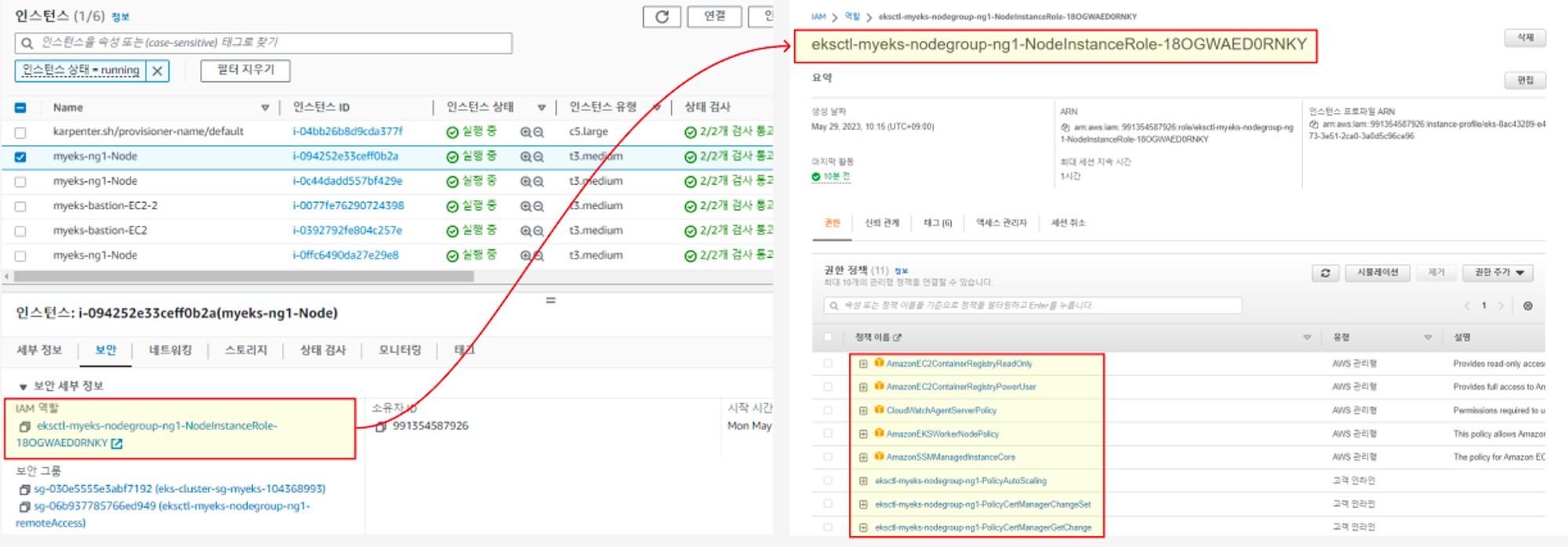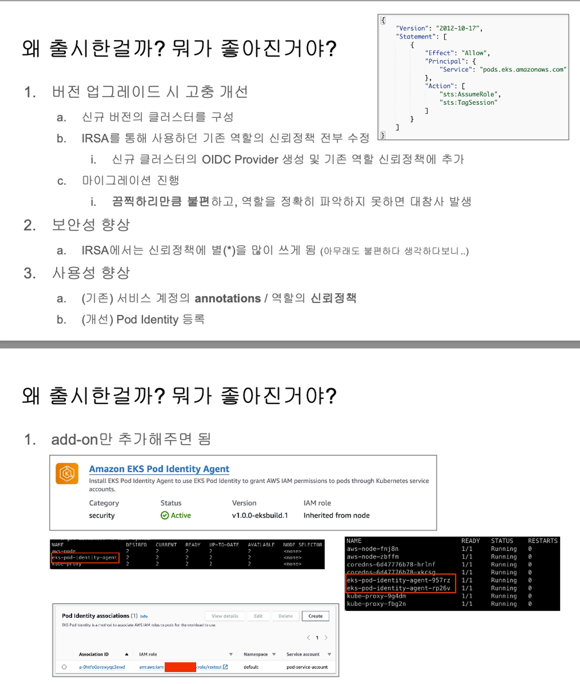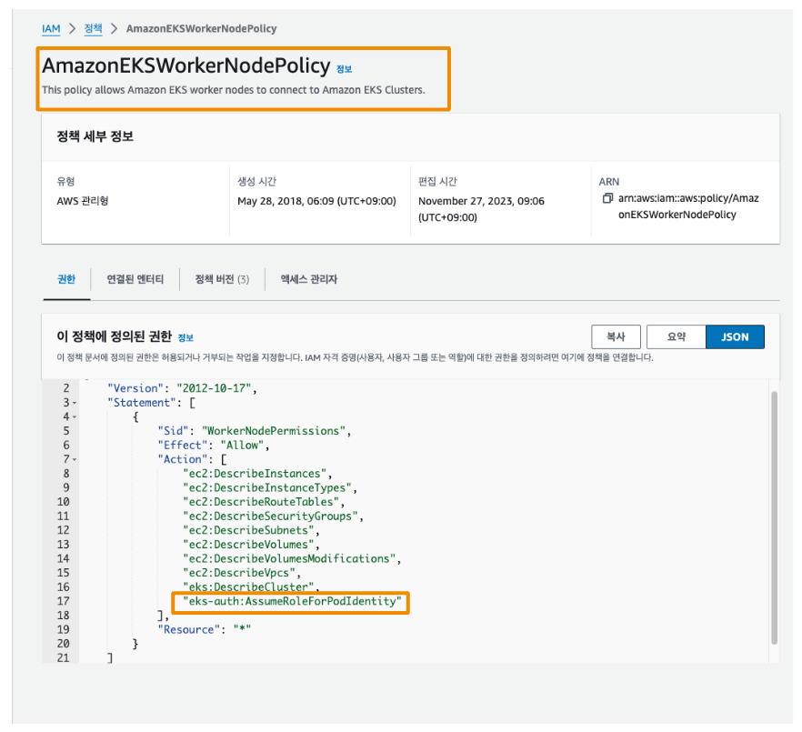 policty에 Pod Identity에 관한 새로운 권한이 추가되었습니다.