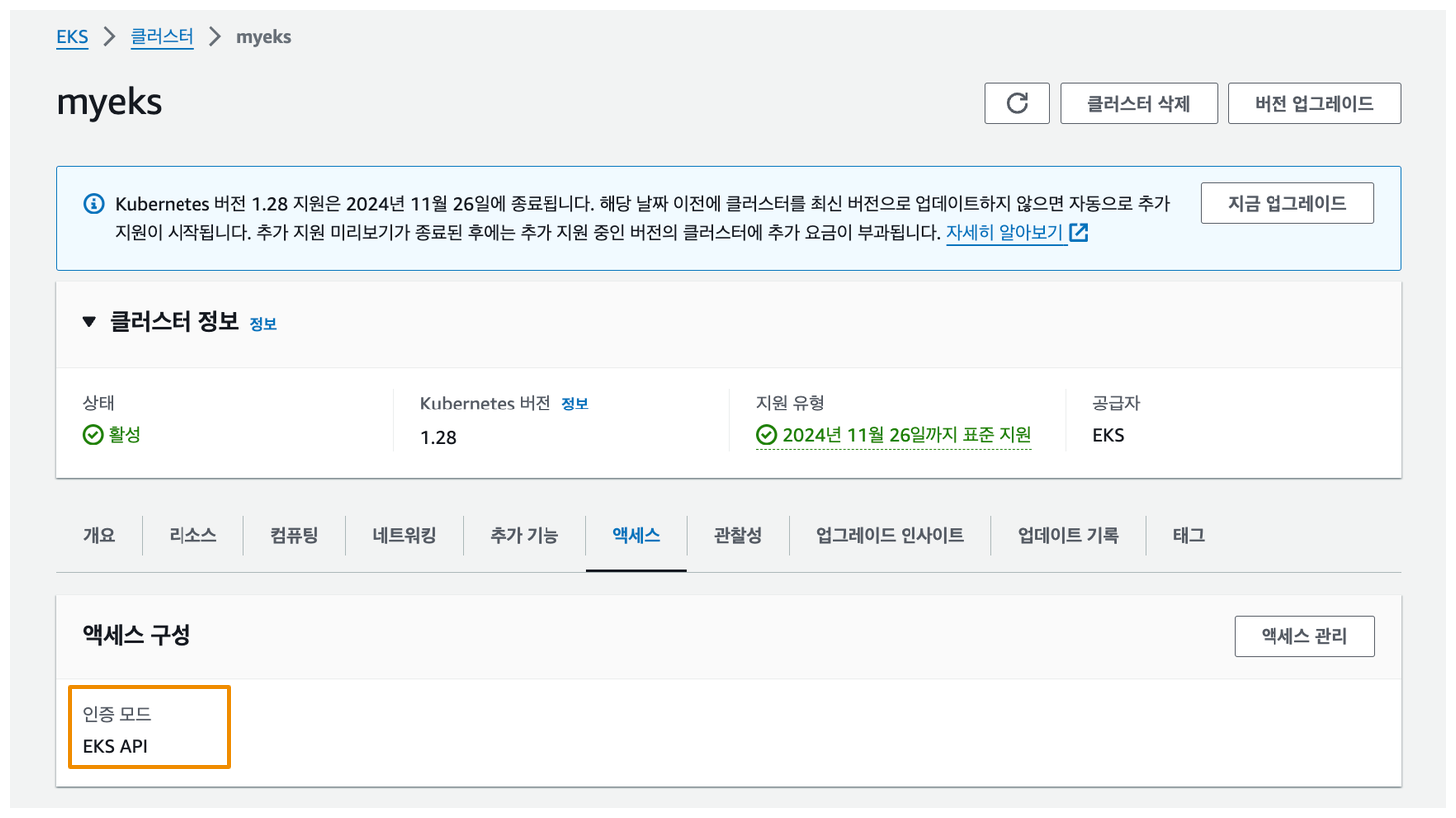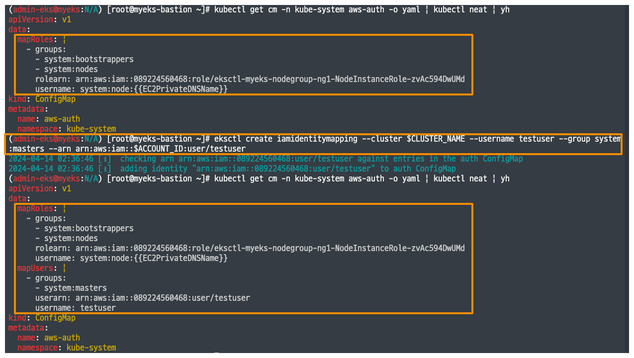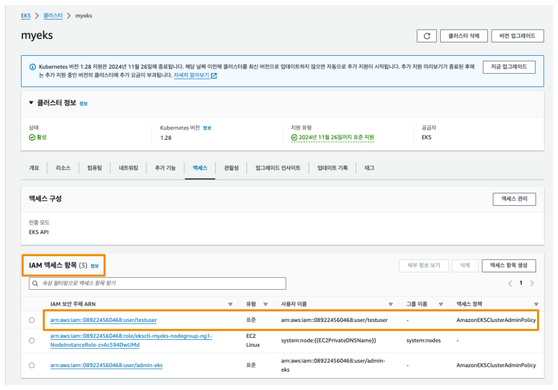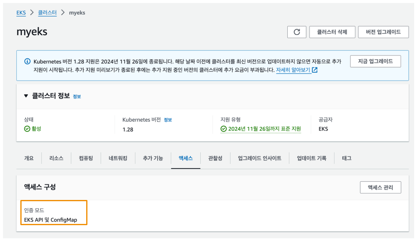 EKS 액세스 항목에서도 조회 및 생성이 가능합니다.