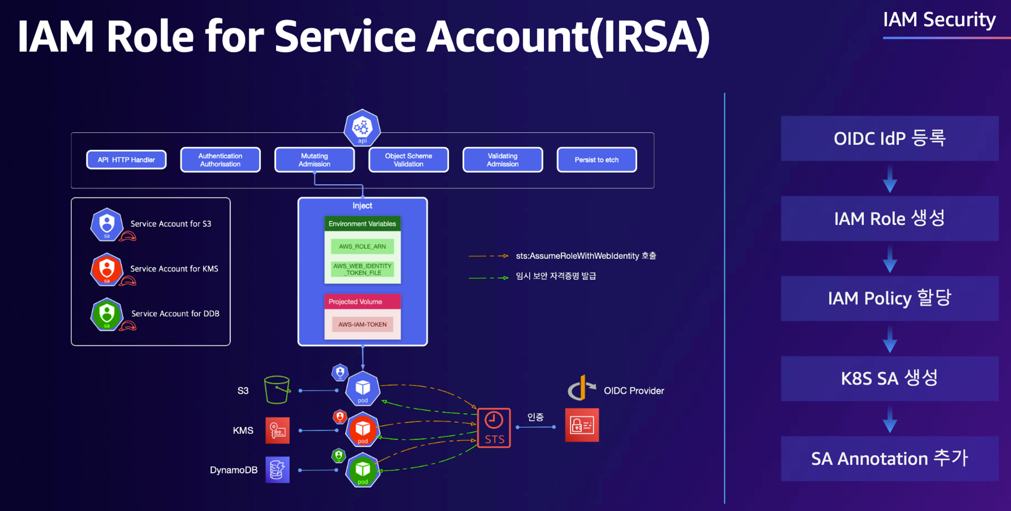 - AuthN → AuthZ → Admisstion Control 권한이 있는 사용자에 한해서 관리자(Admin)가 특정 행동을 제한(validate) 혹은 변경(mutate) - 링크 Slack