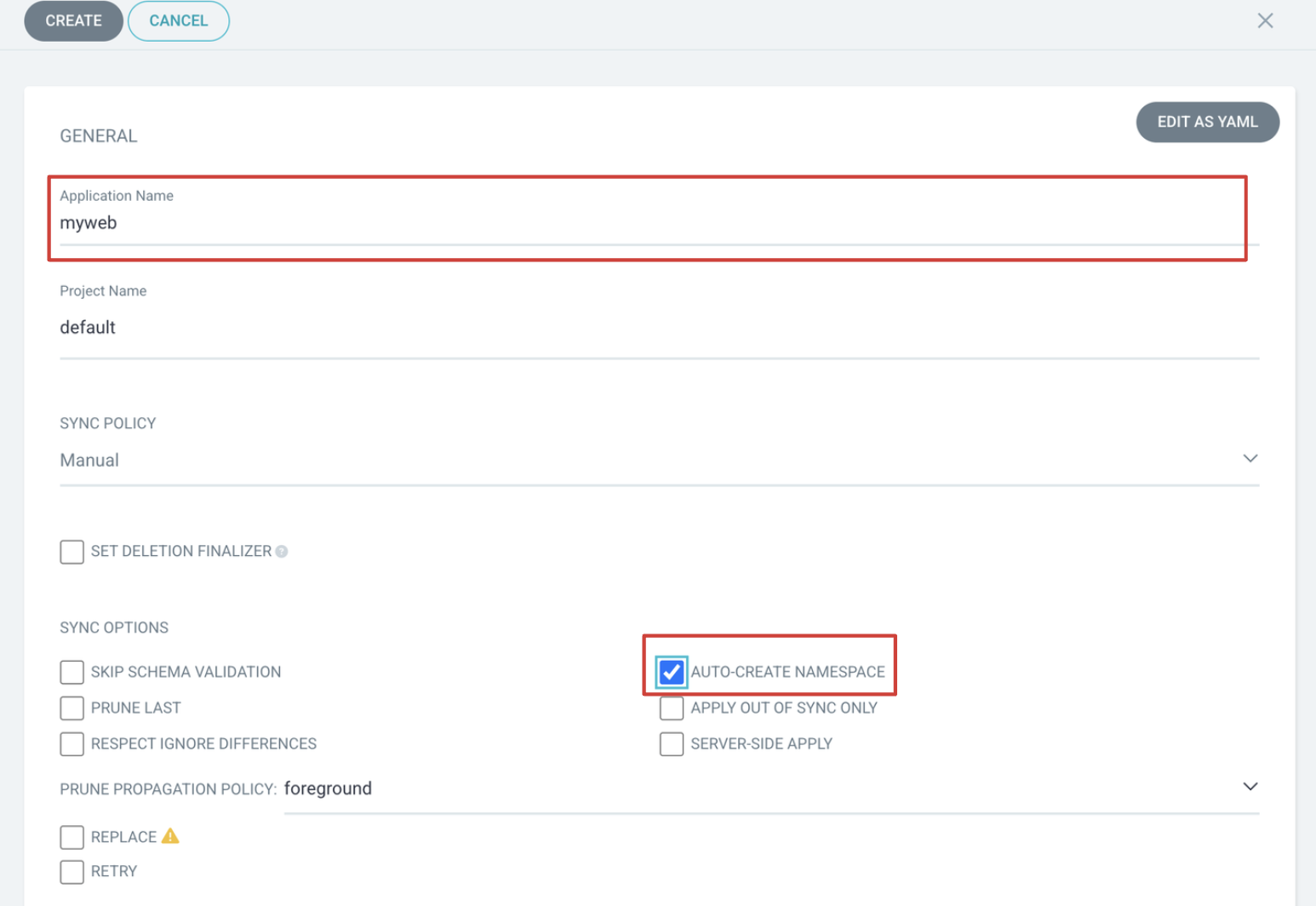 - CreateNamespace=true