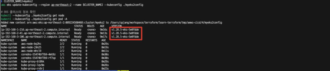 aws eks update-kubeconfig --region ap-northeast-2 --name $CLUSTER_NAME
