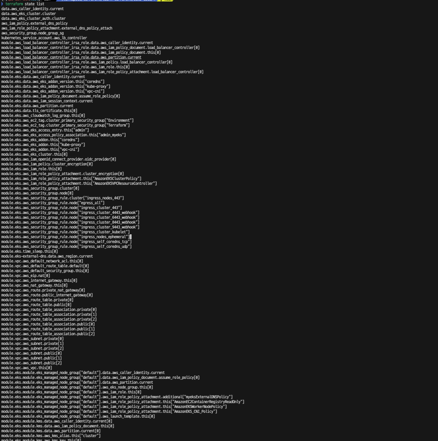 - 주요 생성 자원 : VPC, Subnet, IGW, NATGW, Routing Table, EKS, EKS SG