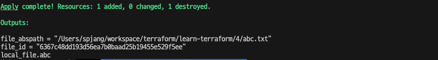 local_file.abc: Refreshing state... [id=5f30576af23a25b7f44fa7f5fdf70325ee389155]