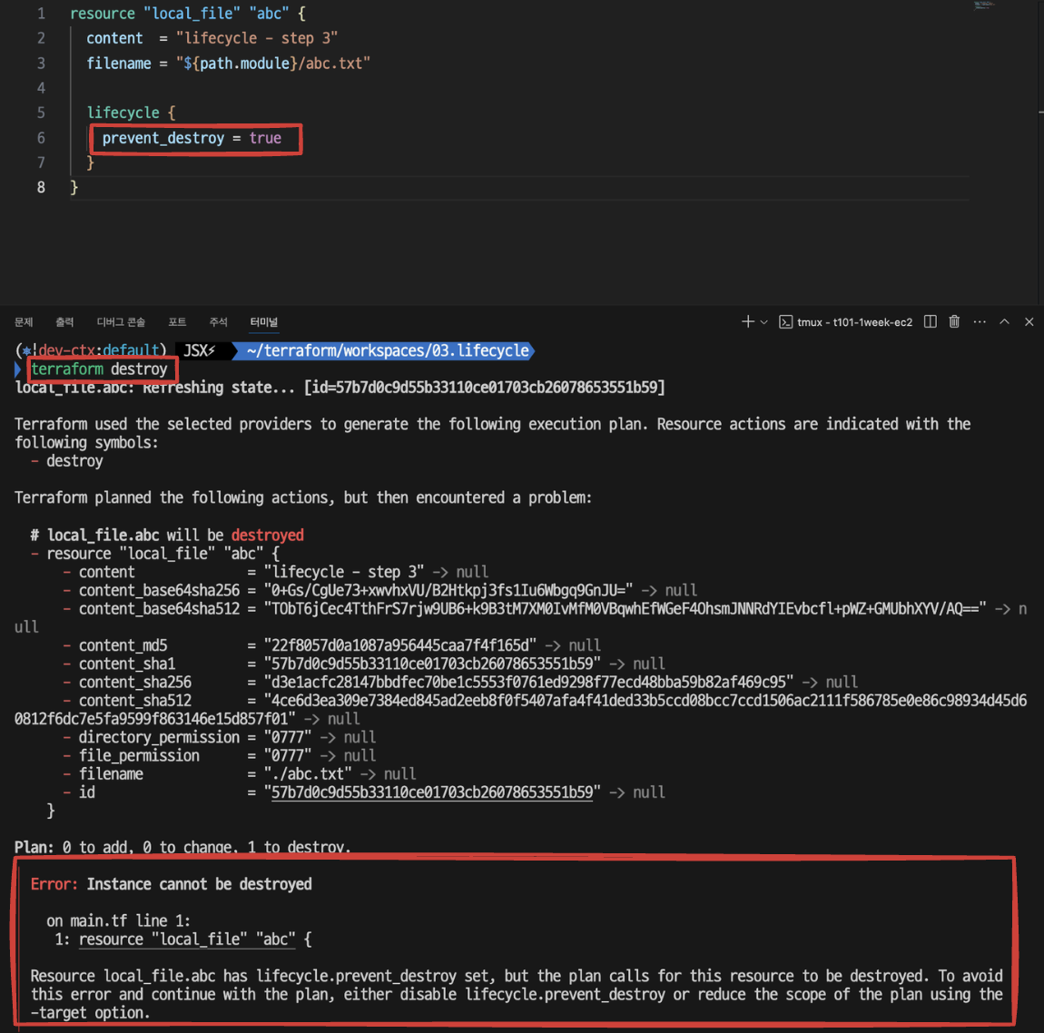 해당 리소스를 destroy(삭제)하려 할 때 명시적으로 거부합니다.