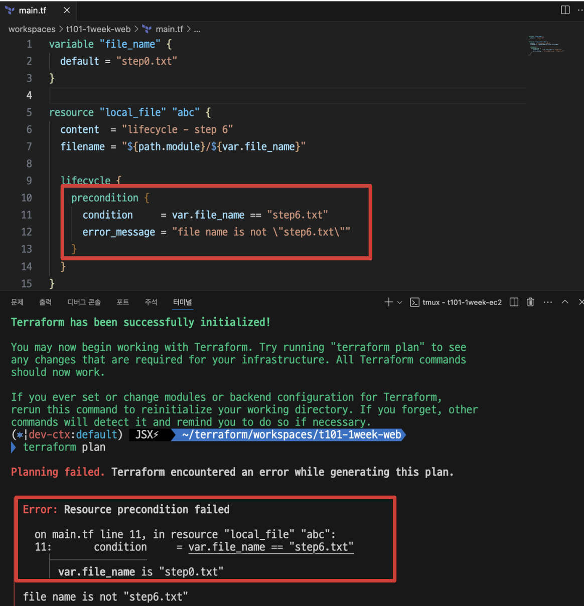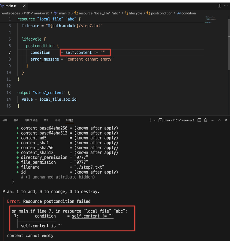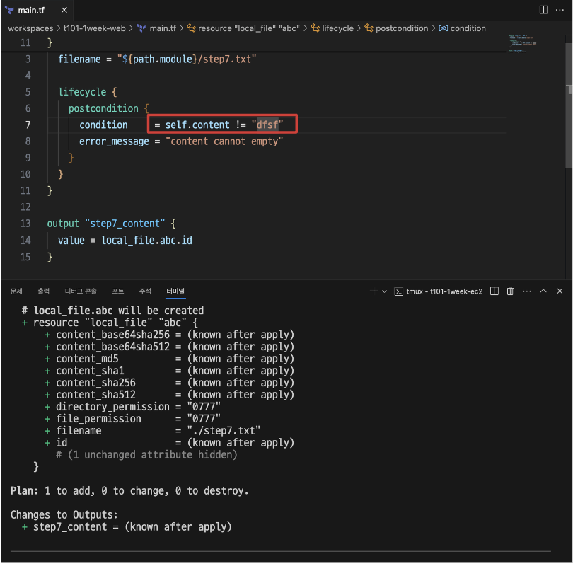 - postcondition: Plan과 Apply 이후의 결과를 속성 값으로 검증