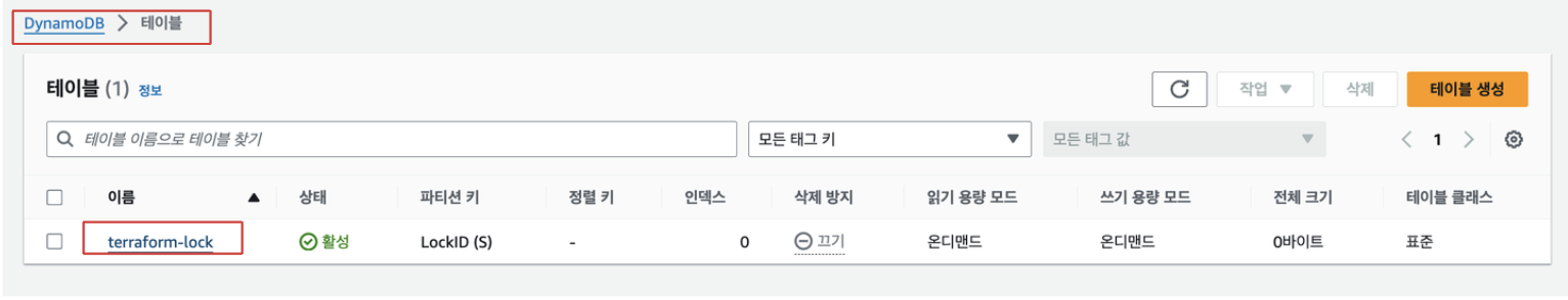 # provider.tf 수정 -> dynamodb_table = "terraform-lock" 주석 제거