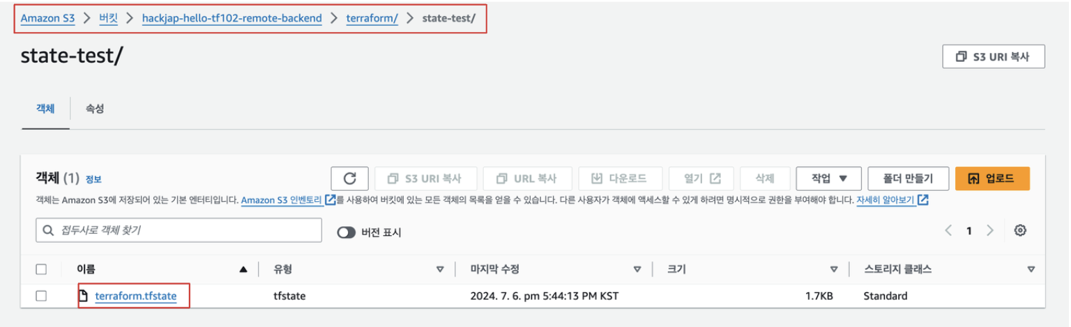 # AWS S3 버킷 내에 tfstate 파일 확인 -> O