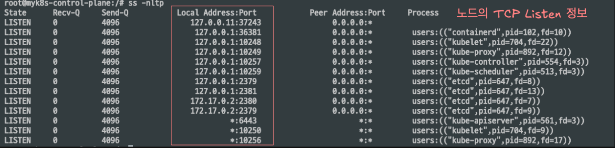 노드 TCP 포트 확인