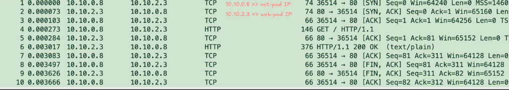 net-pod -> web-pod IP로 직접 통신