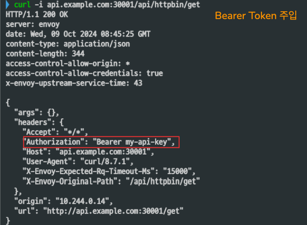 인증에 사용되는 Bearer 토큰을 클라이언트 헤더에서 요청하지 않고, HTTPRoute로 설정합니다.