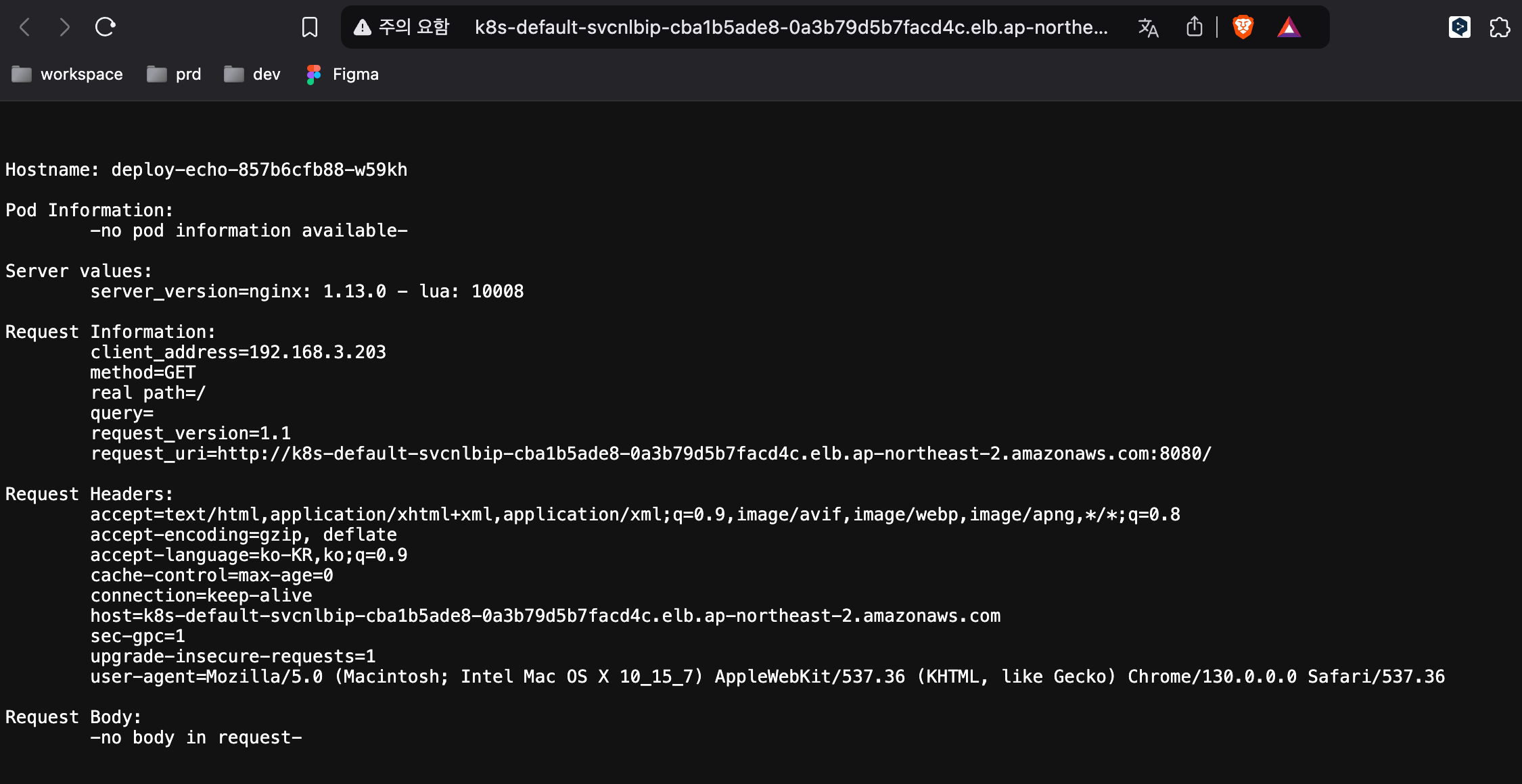 이제 서비스로 반복 요청을 시도하면 한 개의 파드로만 전부 라우팅 되는 것을 확인할 수 있습니다. 이는 서비스를 요청한 Client 파드로 가까운 AZ의 파드로부터 응답한 것입니다.