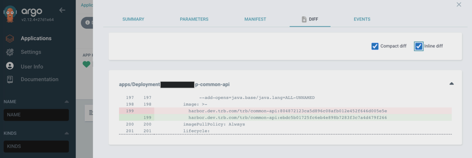 ArgoCD에서도 배포한 이미지의 태그가 GIT_COMMIT_ID로 변경되었음을 확인할 수 있다. 이로써 Docker 없이 jib를 활용하여, 커밋 ID 기반 버전 관리로 GitOps 파이프라인이 잘 동작함을 확인할 수 있다.