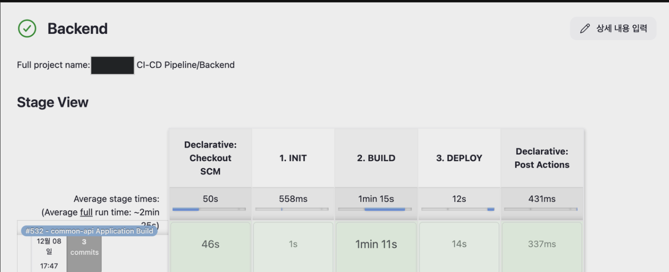 작성한 Jenkinsfile을 가지고 젠킨스 파이프라인을 실행한다.