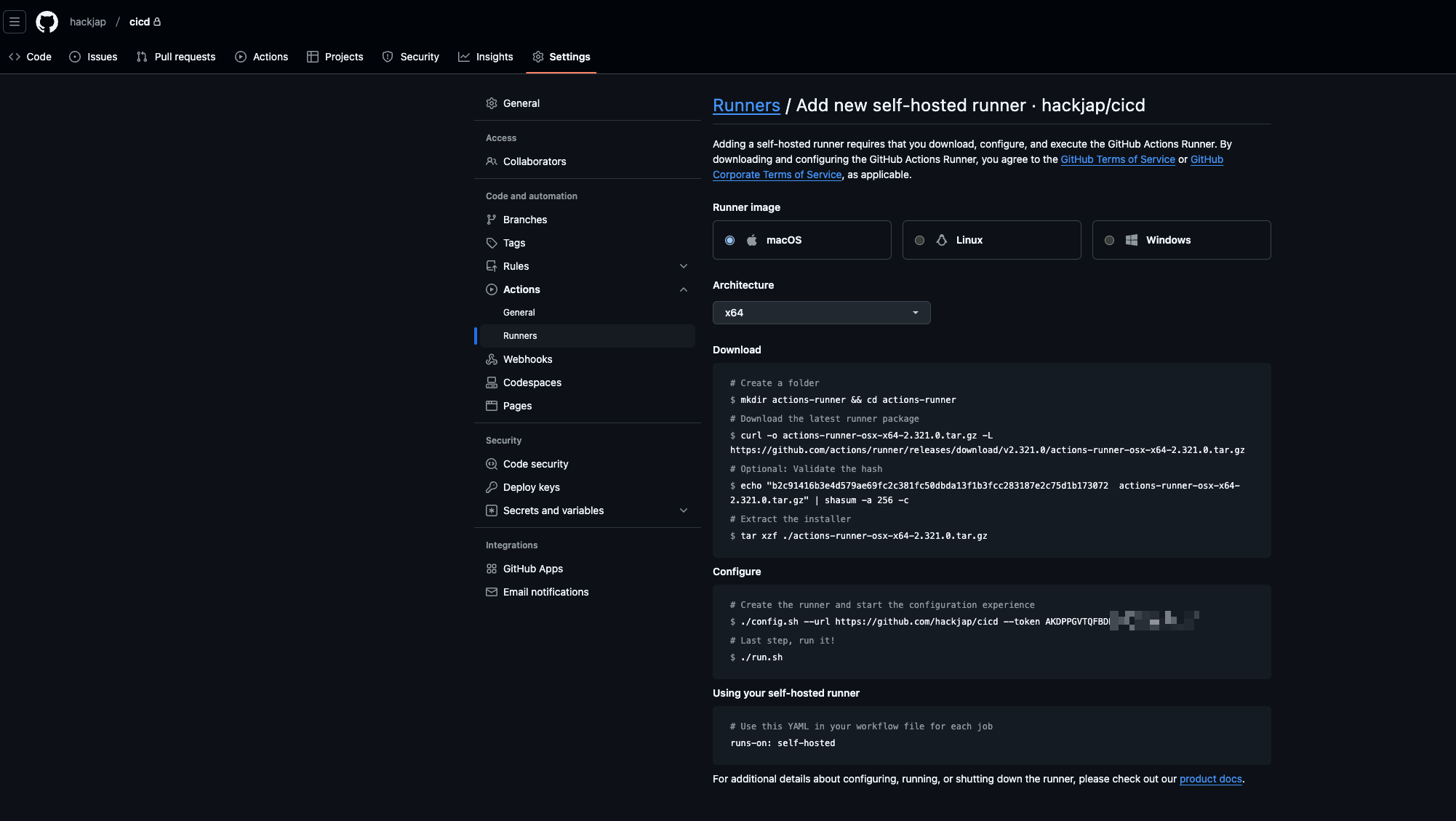 $ tar xzf ./actions-runner-osx-x64-2.321.0.tar.gz