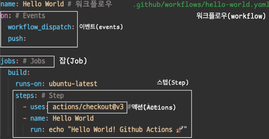 - Github Actions에서 실행되는 자동화 작업의 집합( Jenkinsfile과 비슷 )
