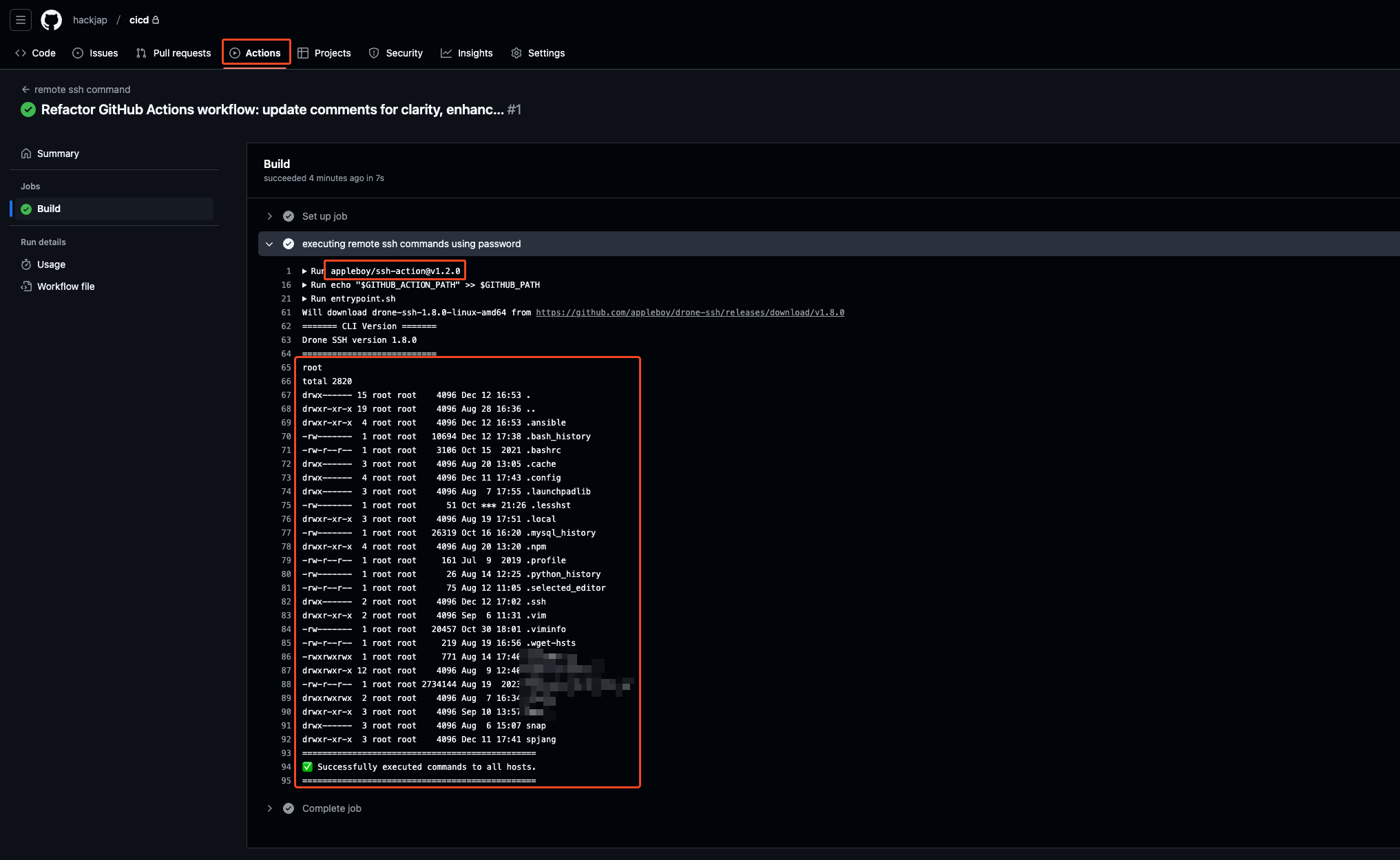 GitHub Actions 페이지에서 작성한 Job들이 정상적으로 수행되는 것을 확인할 수 있다.