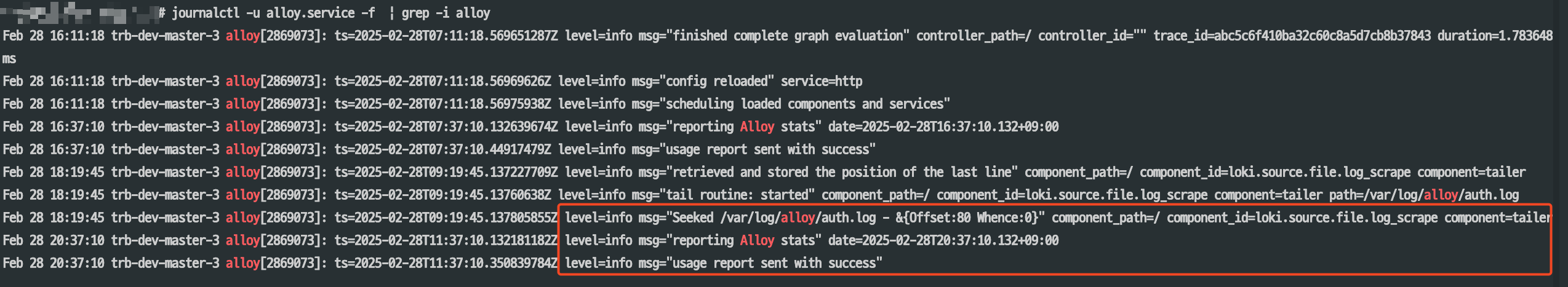 이번 실습에서는 Alloy 서비스(데몬) 자체의 로그를 수집하여 Loki로 전송해 보자.