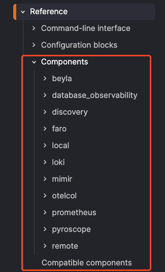 Grafana Alloy는 컴포넌트 기반 아키텍처를 채택하여, 추가적인 플러그인이나 모듈을 별도로 설치할 필요 없이 설정 파일 내에서 다양한 컴포넌트를 정의하고 구성할 수 있다. Grafana는 공식 문서를 통해 다양한 컴포넌트 목록과 각각의 사용 방법을 제공하고 있어, 사용자가 자신의 환경에 맞는 구성을 쉽게 찾을 수 있다.