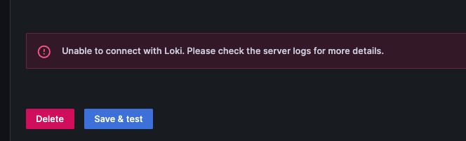 그라파나의 Grafana > Connect > Data sources 메뉴에서 Loki를 데이터 소스로 연결 시에, 다음과 같은 에러가 발생할 수 있다.