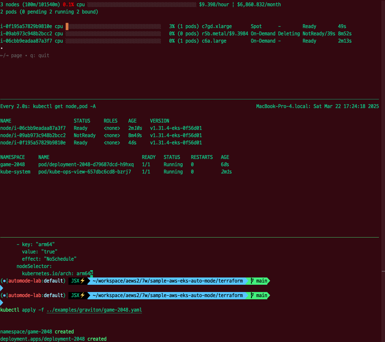 Graviton(arm 프로세스) 노드 인스턴스에 2048 game 애플리케이션을 배포하는 실습을 진행합니다.