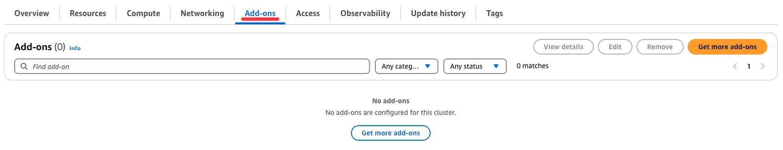 EKS에는 Addon이 존재하지 않음을 확인