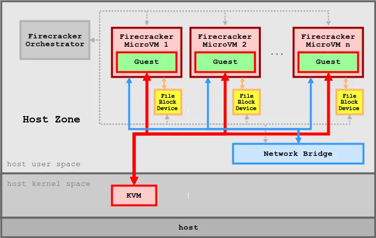 Firecracker는 여러 수준(Layer)의 격리와 보호를 사용하기 떄문에 거의 완벽한 보안을 자랑합니다. 또한 경량화된 설계로 1초도 되지 않는 시간 안에 경량 microVM(마이크로 가상 머신)을 시작할 수 있기 때문에 리소스를 효율적으로 사용할 수 있습니다.