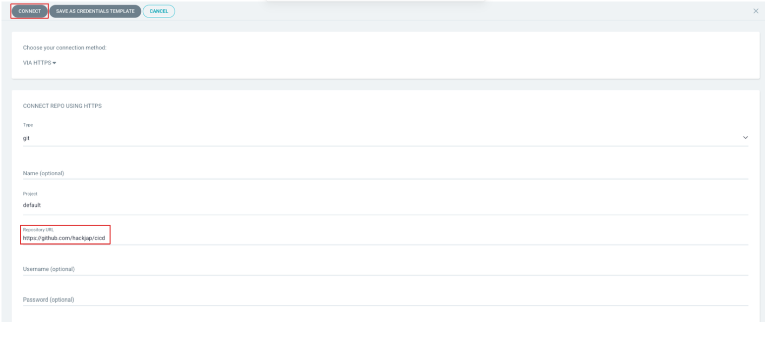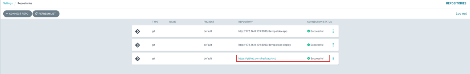 ArgoCD UI에서 위 레포지토리를 등록하였다.
