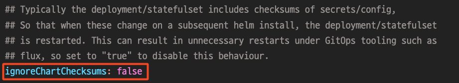 주석을 보면 , GitOps 도구를 사용할 때 이러한 동작이 불필요한 재시작을 유발할 수 있다고 설명한다. 이러한 경우 minio 같은 경우는 비활성화를 할 수 있도록 옵션으로 제공하고 있다.