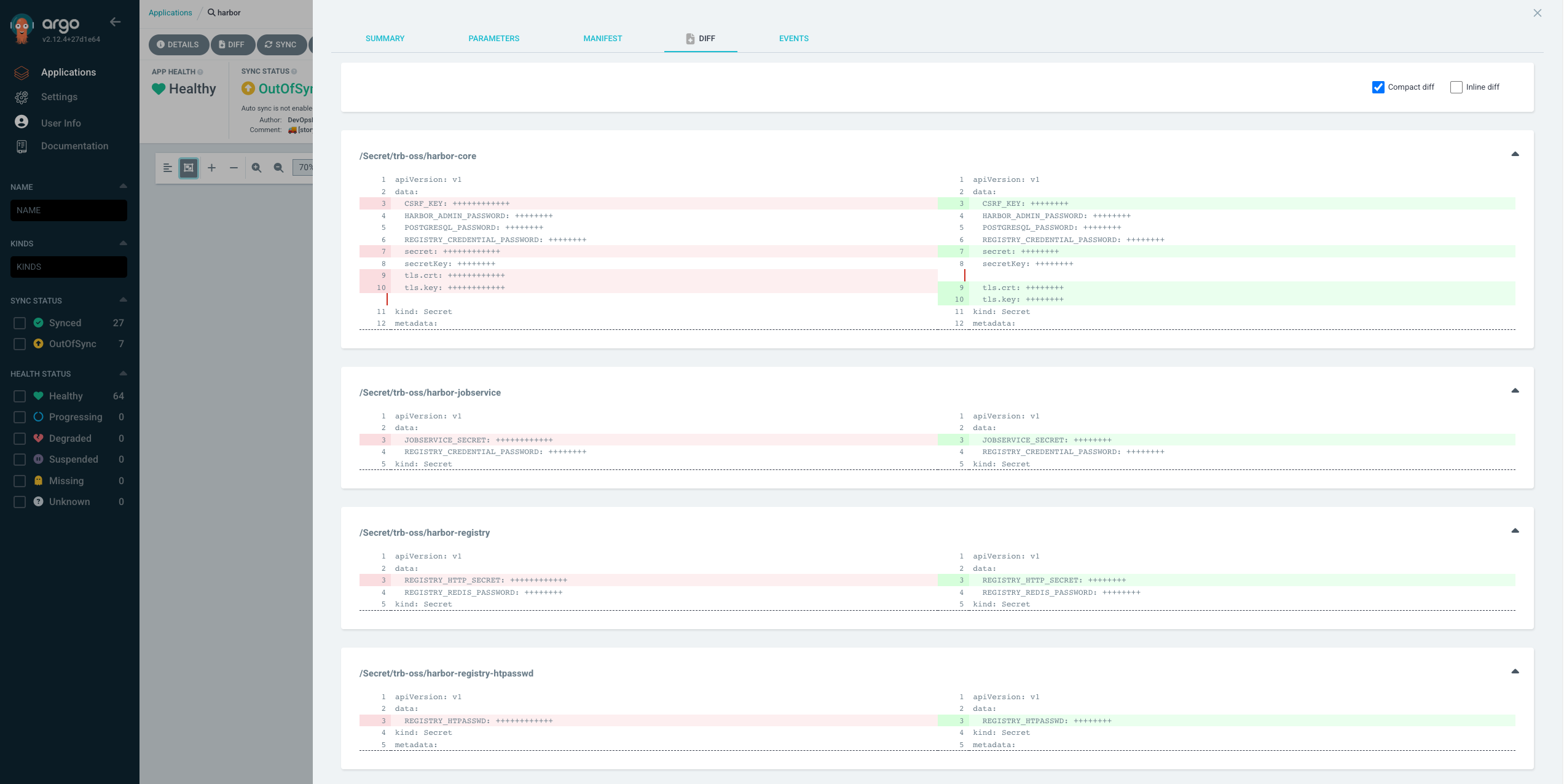 다음은 Harbor 애플리케이션의 Diffing Customization 설정 예시이다.
