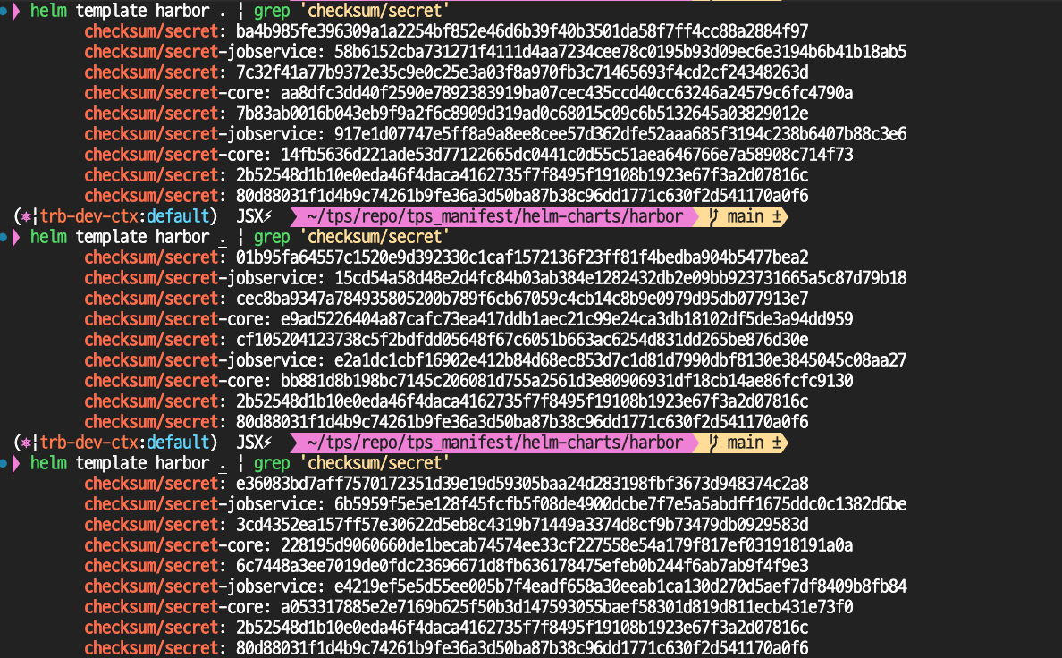 • helm template을 실행할 때마다 결과가 달라지는 필드가 있었다.