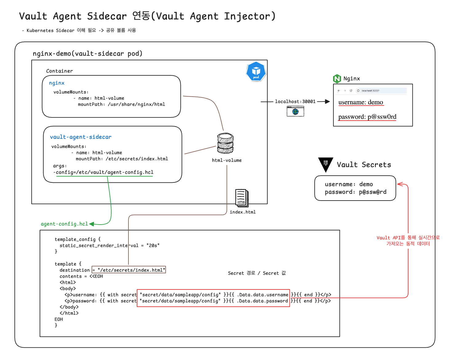 - Vault Secrets Operator(VSO)를 통해 Kubernetes Secret으로 동기화