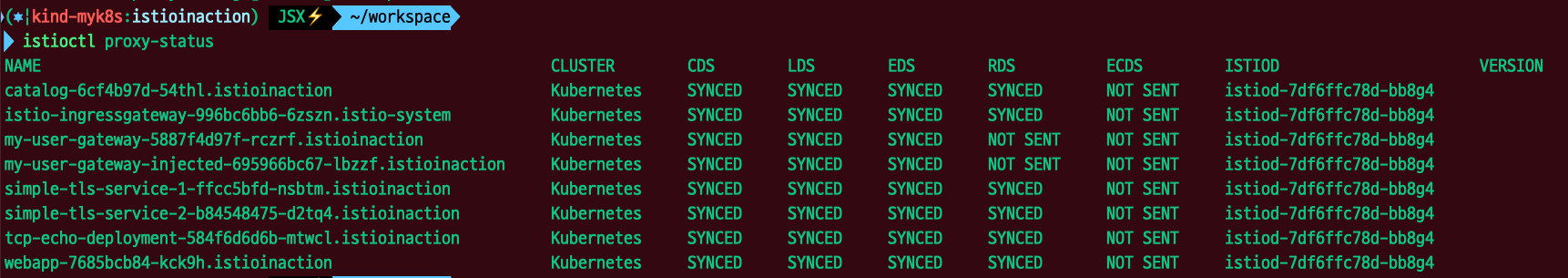 istioctl proxy-status 명령어 시, xDS 상태를 조회할 수 있다.