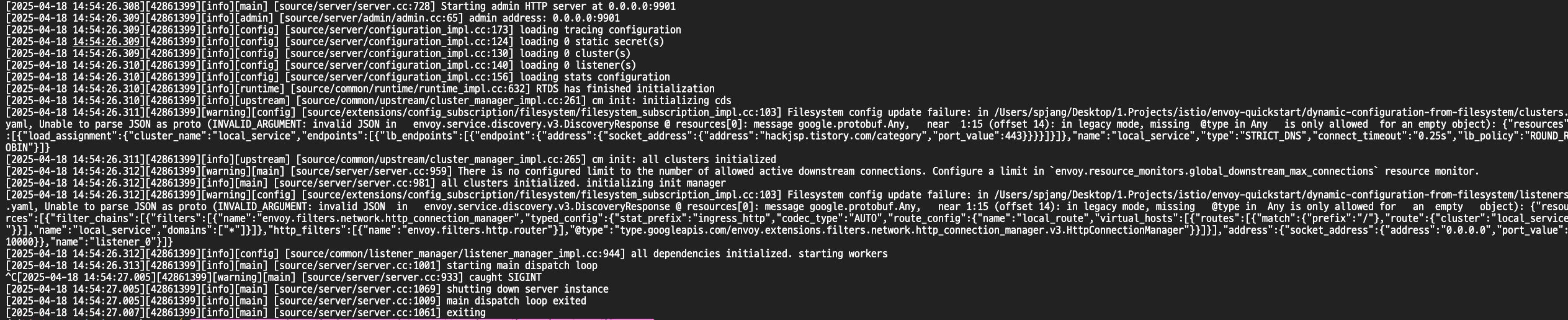 - 설정 파일이 변경되었을 경우, Envoy는 자동으로 반영하지 않음
