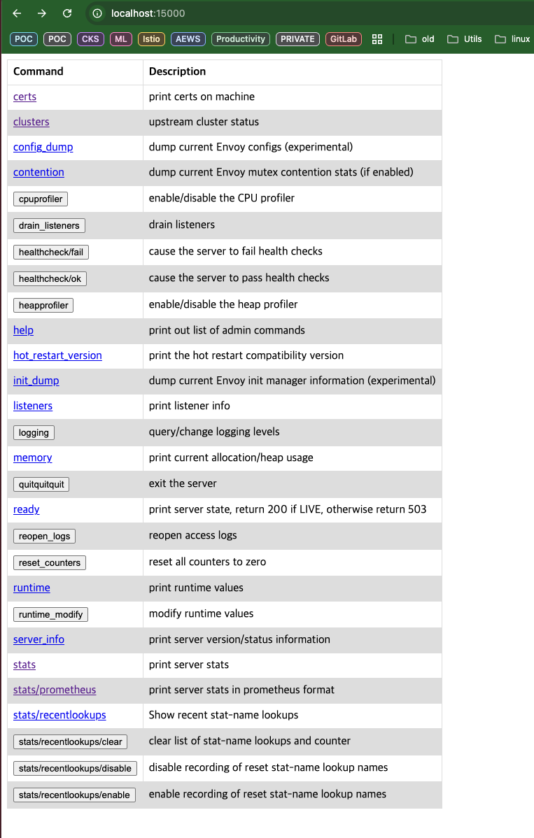 # admin API로 Envoy stat 확인 : 응답은 리스너, 클러스터, 서버에 대한 통계 및 메트릭
