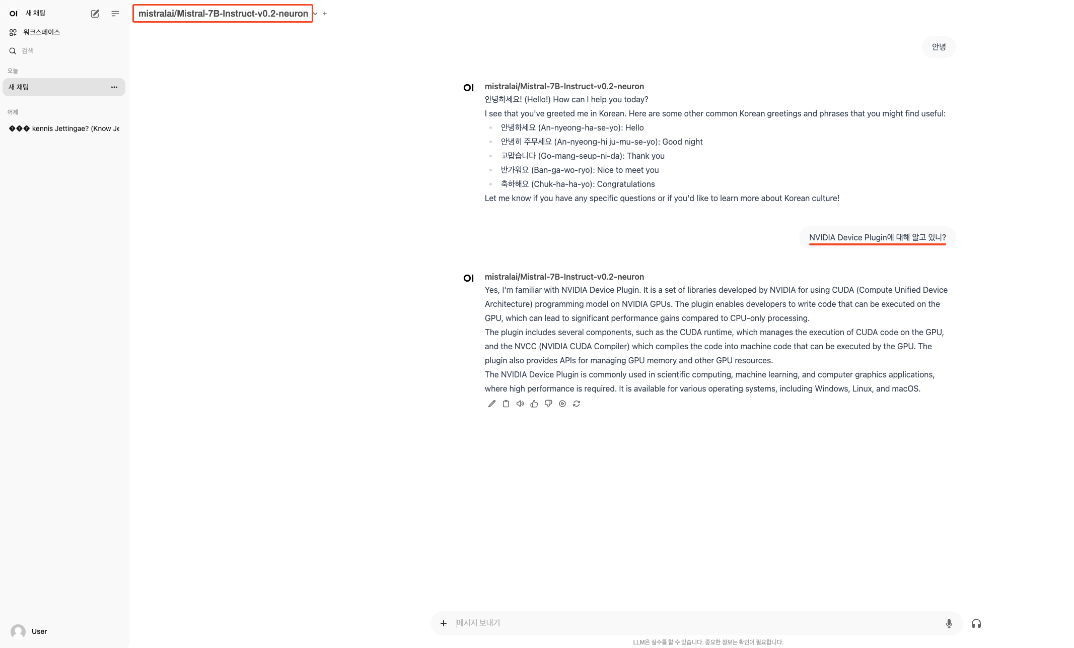 LLM 파드가 온라인 상태가 되면 FSx for Lustre 기반 영구 볼륨에서 Mistral-7B 모델(29GB)을 메모리에 로드하여 사용