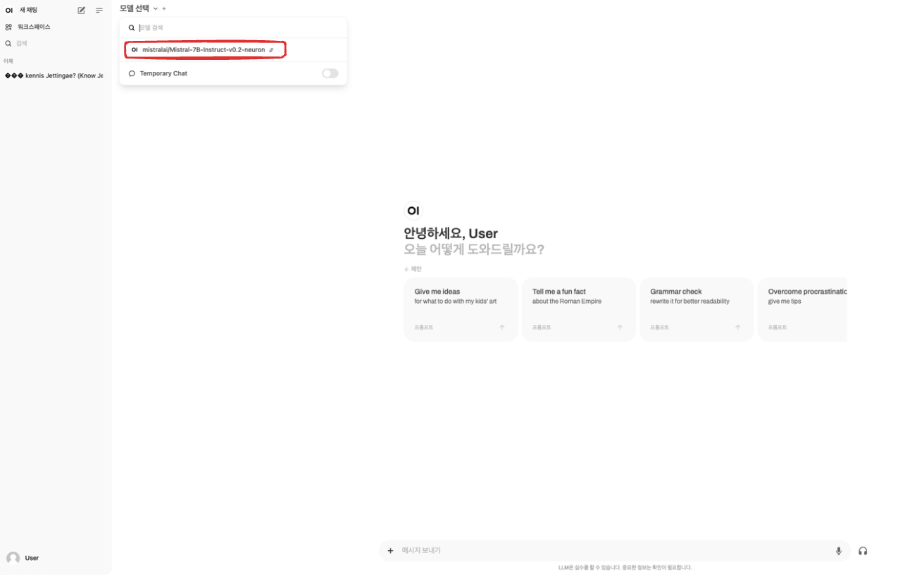Open WebUI Chat 사용자 인터페이스를 제공하는 애플리케이션을 배포한다.