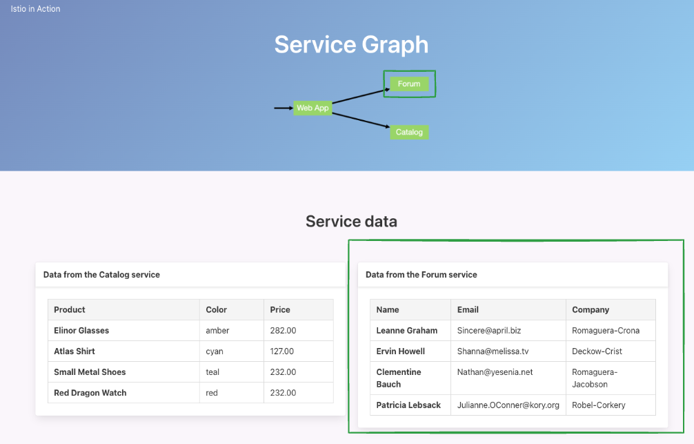 이제 webapp의 Forum 서비스는 jsonplaceholder.typicode.com API를 정상적으로 호출할 수 있고, webapp 화면에도 Forum 데이터가 표시된다.
