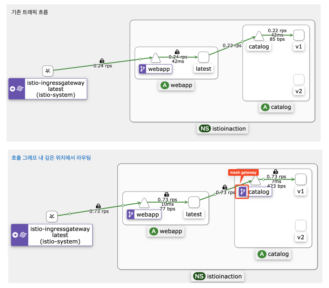 호출 그래프 내 깊은 위치에서 라우팅(Mesh Gateway)