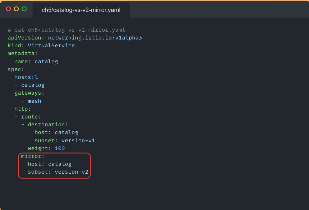 kubectl apply -f ch5/catalog-vs.yaml -n istioinaction