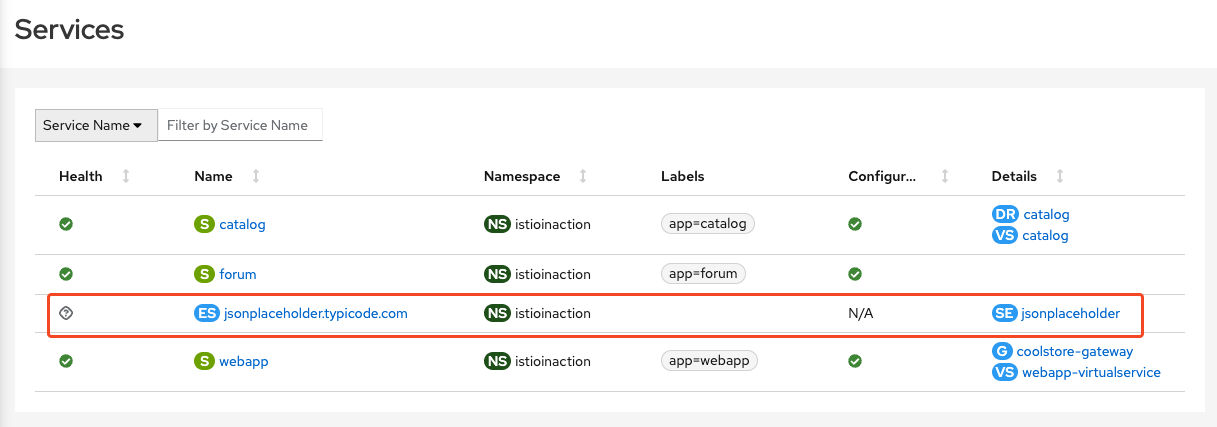 외부 트래픽을 허용하기 위해 jsonplaceholder.typicode.com에 대한 ServiceEntry를 작성한다.